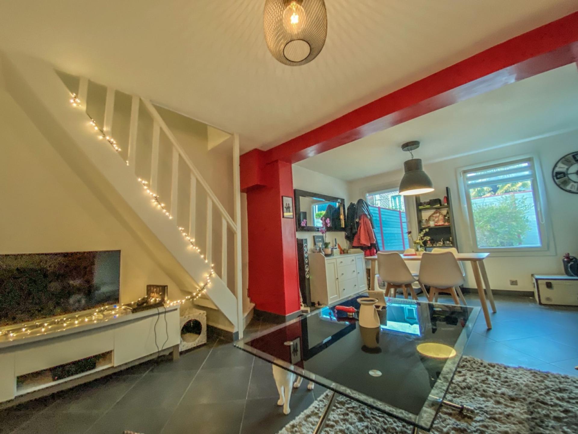 Vous profiterez pour cette maison de ville au pied des transports et des commerces, située dans un environnement calme et lumineux de :