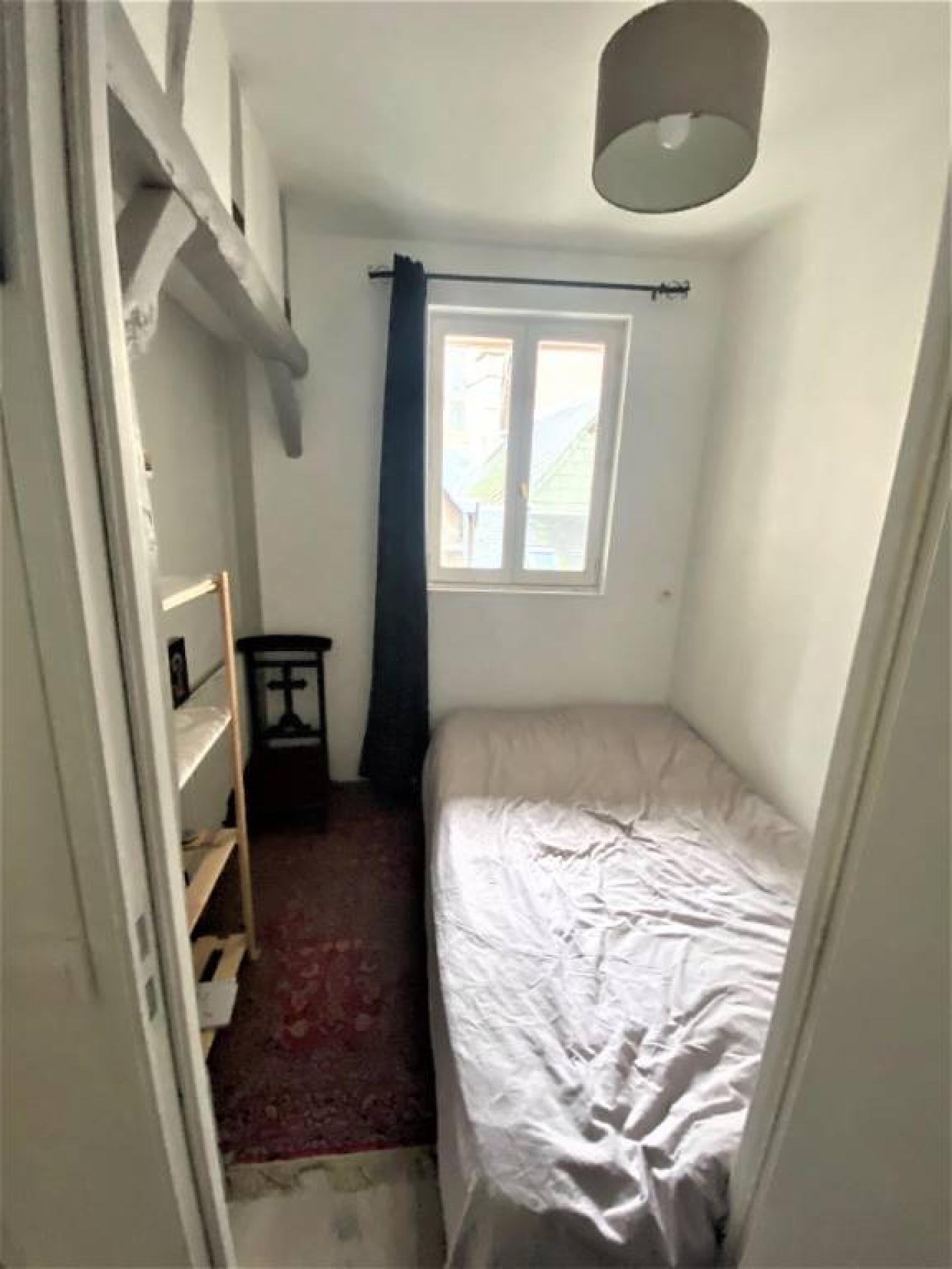 - Une chambre de 12 m², avec, en plus, une buanderie contenant une arrivée d'eau, fenêtre donnant sur cour.