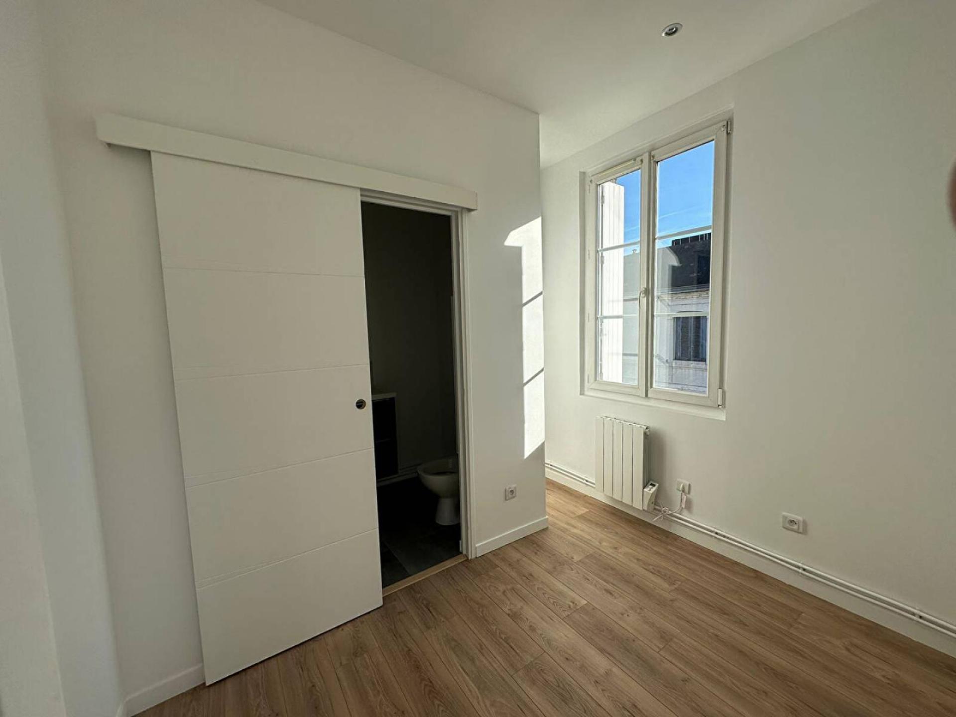 Cet appartement entièrement rénové comprend : séjour avec cuisine aménagée, ouverte, chambre, salle d'eau avec wc.